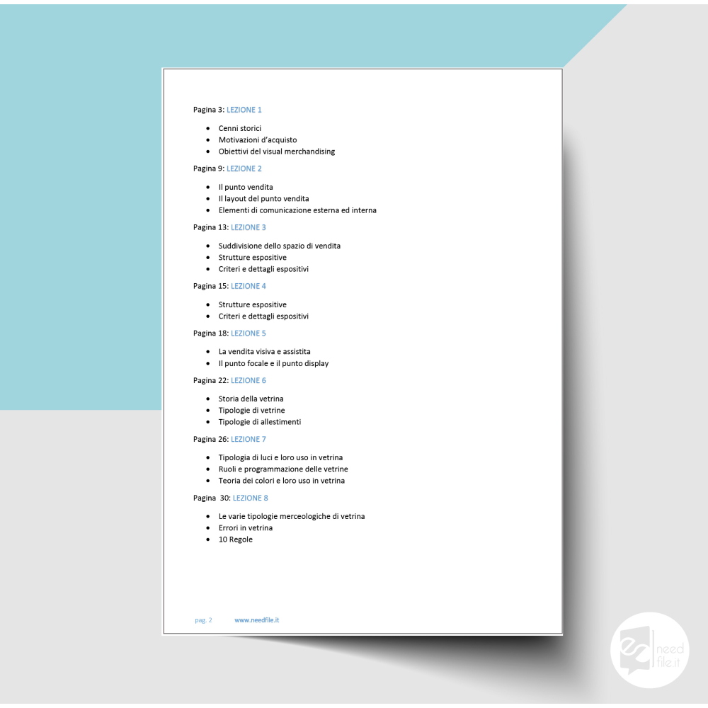 Concetti per conoscere e imparare le basi della professione del Visual Merchandiser, quel professionista che si occupa di allestire le vetrine dei negozi strutturati in varie lezioni che toccano nozioni di storia e di marketing.