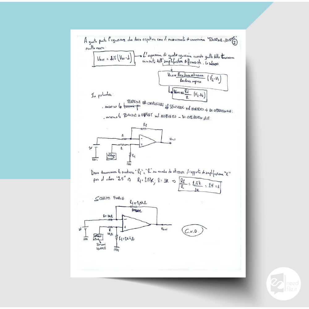 Appunti di elettronica per studenti con calcoli e formule matematiche.