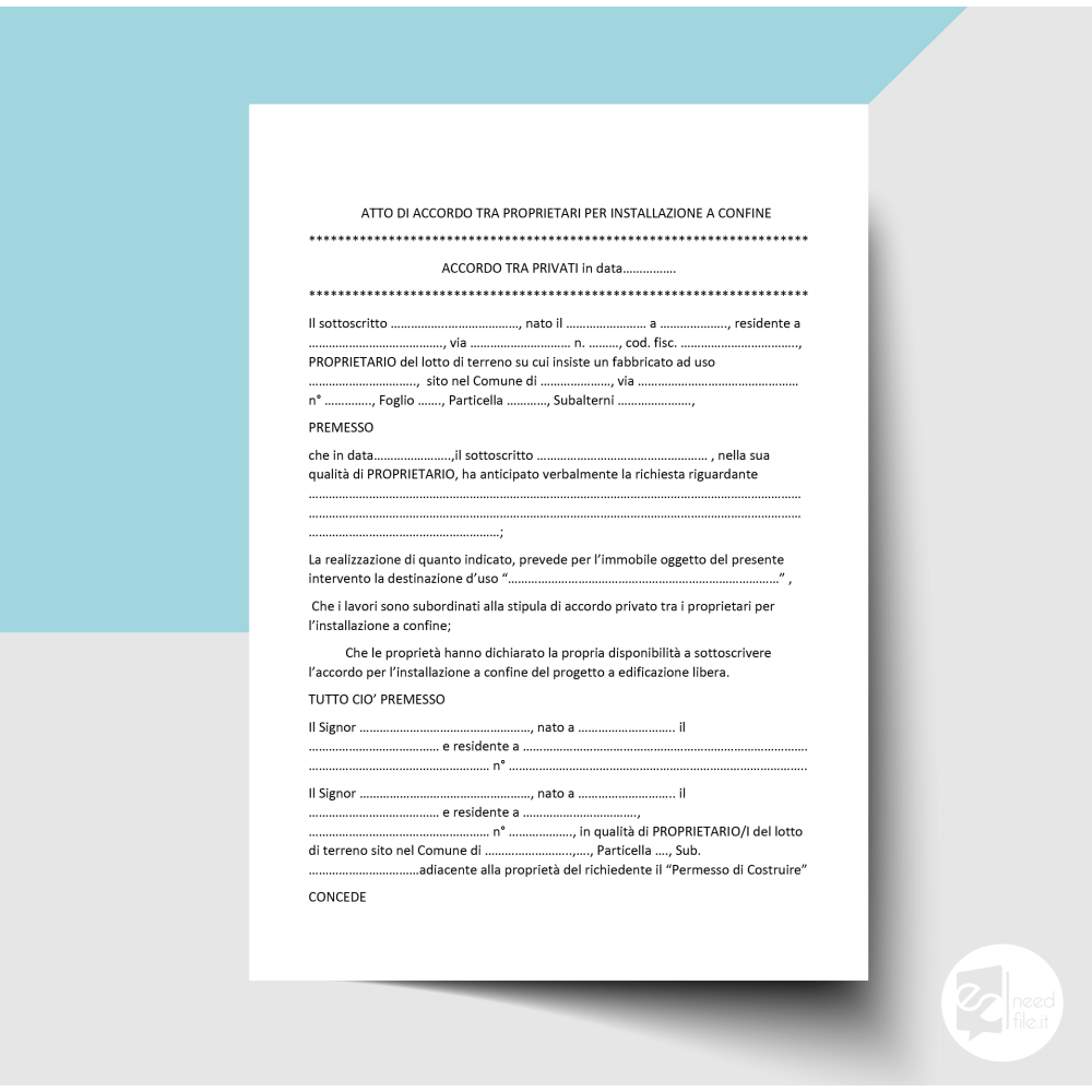 Modello per accordo tra privati per installazione a confine con possibilità di modifica per altre necessità.