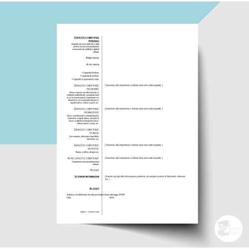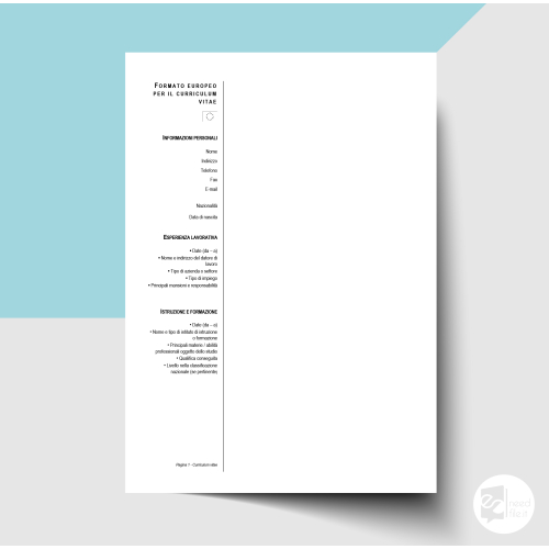Modello di curriculum in formato Europeo, di facile compilazione per studenti e lavoratori.