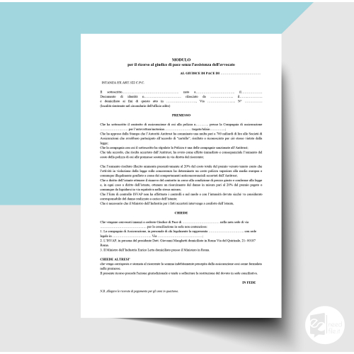 Modulo per il ricorso al giudice di pace senza l'assistenza dell'avvocato.