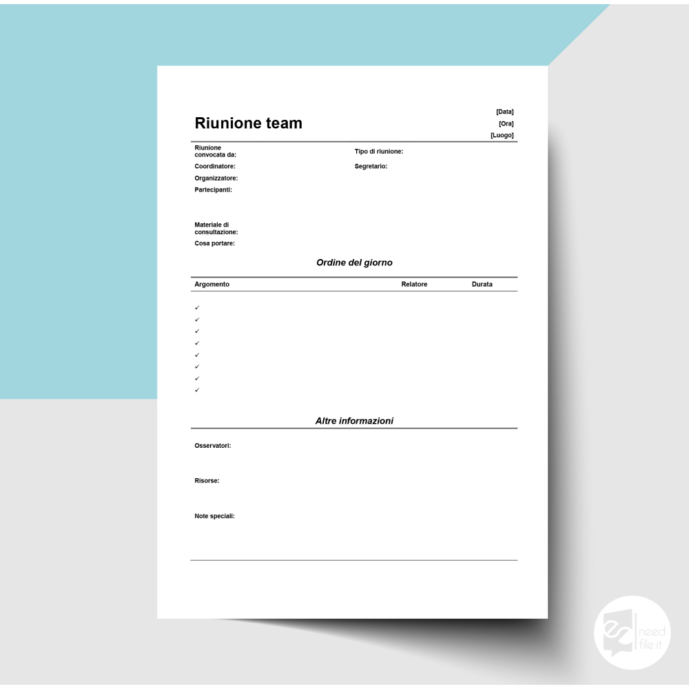 Modulo di richiesta per riunione, utile per uso provato o professione dove è possibile indicare nominativi ed argomenti.