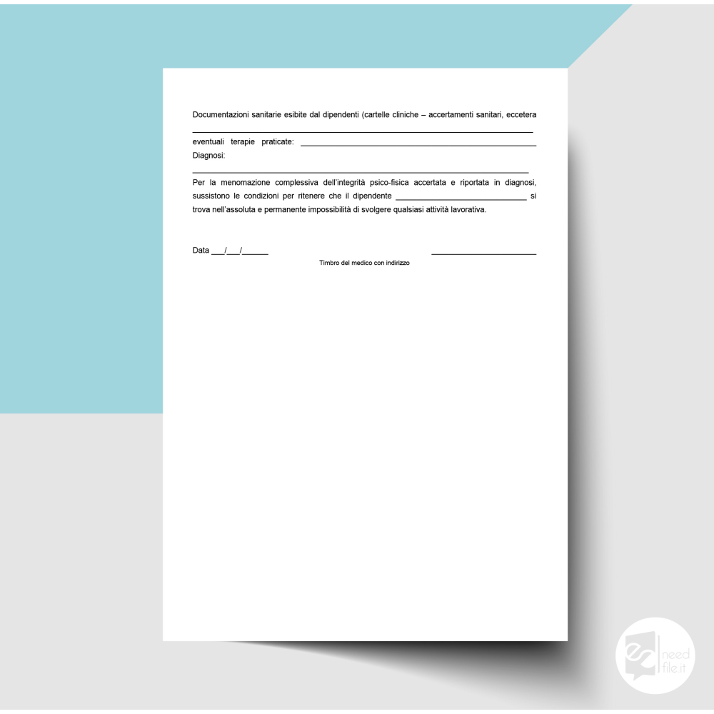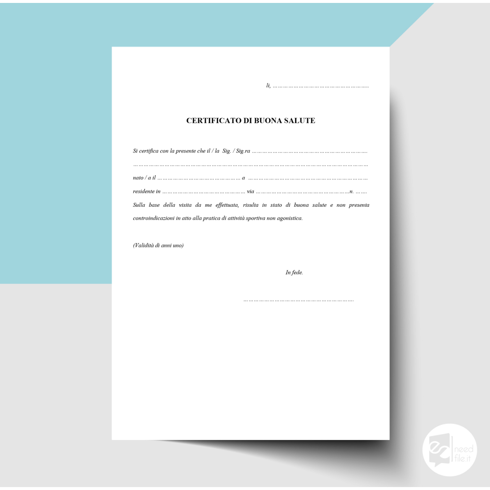 Modello di facile compilazione per il certificato di buona salute da far firmare al proprio medico curante.