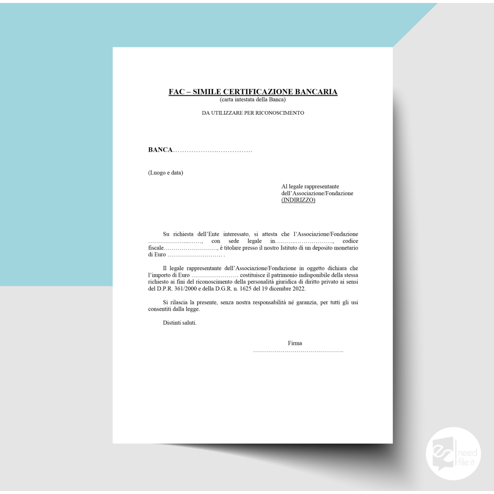 Modello di facile compilazione per il certificato bancario da utilizzare per il riconoscimento nell'effettuazione delle operazioni di varia natura.